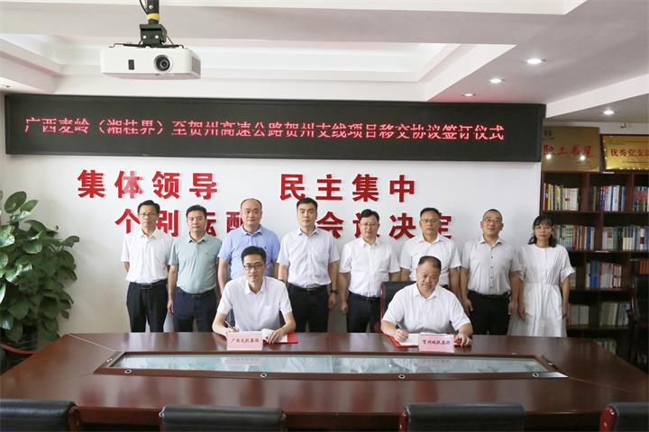 賀州支線西接麥賀高速公路主線,東經(jīng)連賀高速公路與二廣高速相連,公路建設(shè)打通了旺高工業(yè)基地、西灣工業(yè)基地與華北、華中及沿海地區(qū)的聯(lián)系通道,工程建設(shè)對優(yōu)化賀州市路網(wǎng)結(jié)構(gòu),構(gòu)建廣西東部和中部地區(qū)的重要門戶和樞紐,落實賀州市“十四五”規(guī)劃及綜合交通運(yùn)輸發(fā)展規(guī)劃,提升高速公路過境效率,加速助力實施鄉(xiāng)村振興,促進(jìn)賀州市經(jīng)濟(jì)社會發(fā)展具有重要意義。項目移交協(xié)議的簽訂,標(biāo)志著項目正式移交廣西交投集團(tuán)實施,為項目快速推進(jìn)打下堅實基礎(chǔ)。簽約儀式后,雙方還就如何加快項目建設(shè),不斷深化交流合作進(jìn)行了探討。