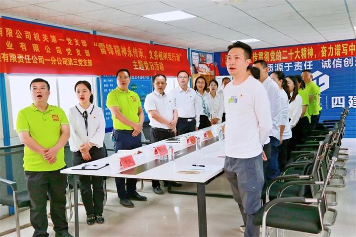 城投集團(tuán)機(jī)關(guān)第一黨支部書記、董事會秘書湯彩燕,實(shí)業(yè)公司黨支部書記、董事長聶茂良,廣西建工四建公司一分公司第三黨支部書記莫孝強(qiáng)等參與本次活動。