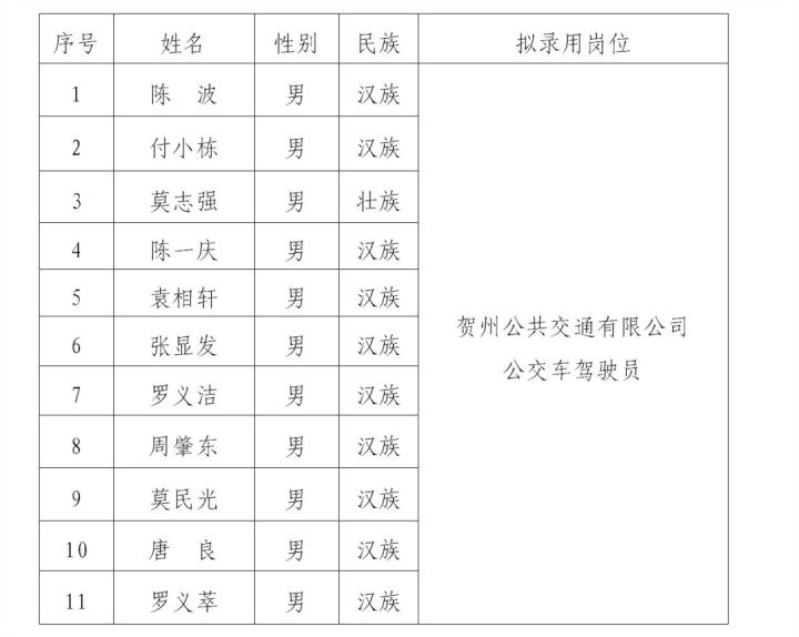賀州市城市運營投資管理有限公司2023年第一次公開招聘擬錄用人員公示2023-06-30